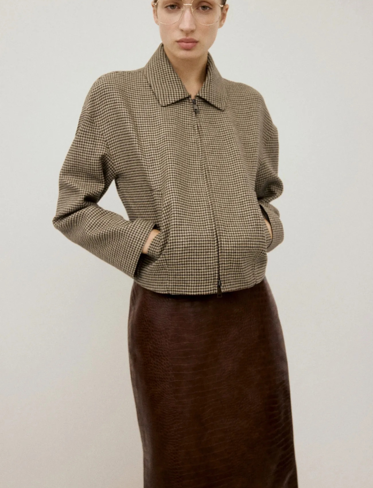 Mango Houndstooth Jacket With Lapels - Brown - S