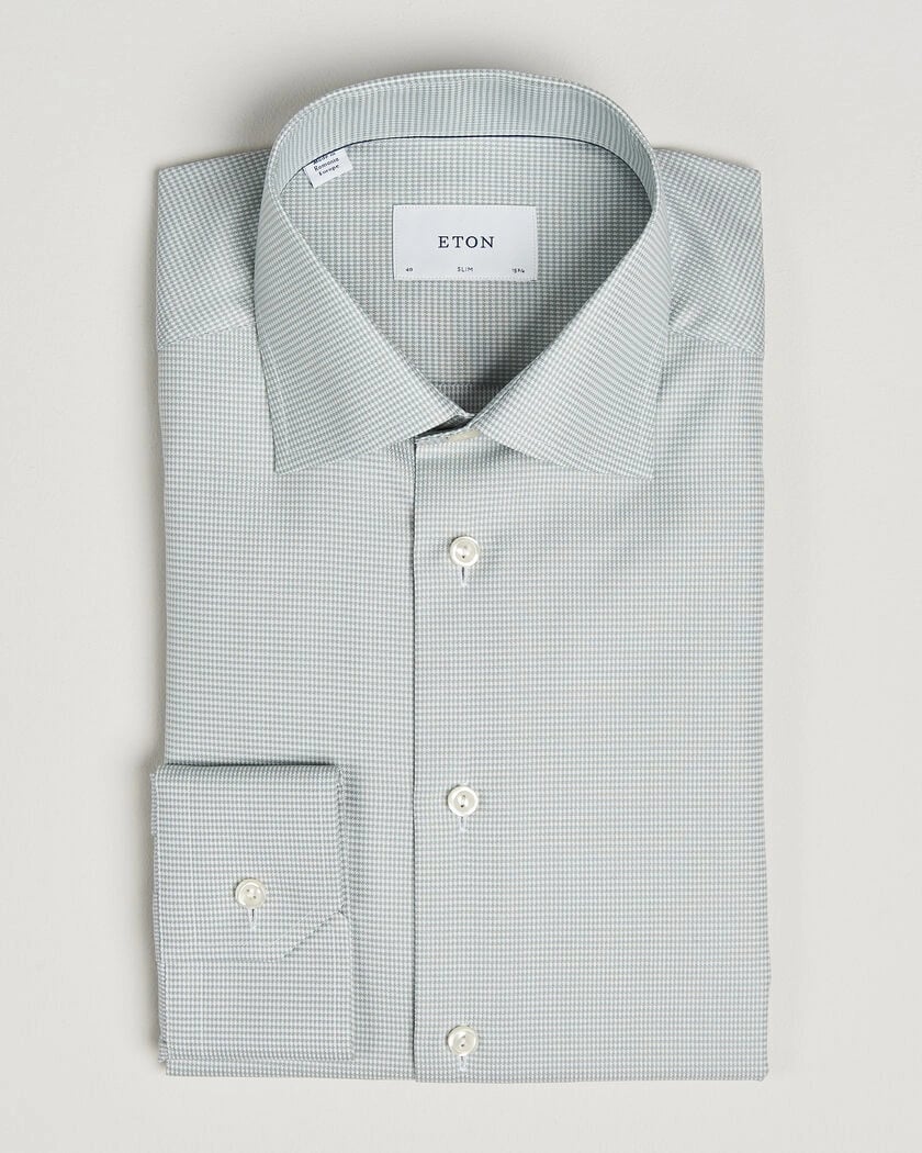 Eton Slim Fit Signature Twill Houndstooth Shirt Light Green