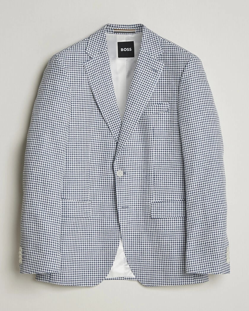 BOSS BLACK Hutson Linen/Cotton Houndstooth Blazer Open Blue