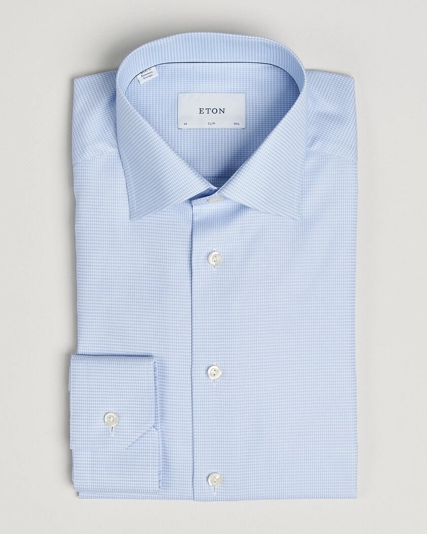 Eton Slim Fit Signature Twill Houndstooth Shirt Light Blue