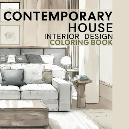 Contemporary House Interior Design Coloring Book: 49 scenes of interior design coloring page