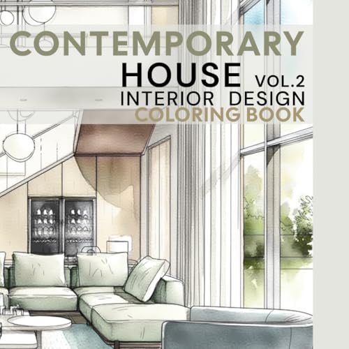 Contemporary House Interior Design Coloring Book Vol.2: 49 scenes of interior design coloring page