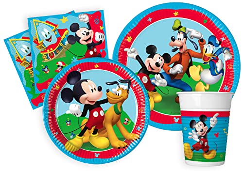 Party Tableware Set Disney Mickey Rock the House for 24 people (112 pcs: 24 paper plates Ø23cm, 24 paper plates Ø20cm, 24 cups 200ml, 40 paper napkins 33x33cm)
