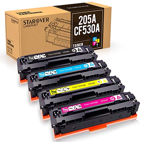 STAROVER Kompatibel tonerkassett ersättning för HP 205A CF530A CF531A CF532A CF533A för HP Color Laserjet Pro M181FW M181 M180 180N för HP Color Laserjet Pro M154A M154NW M154 (4-pack)
