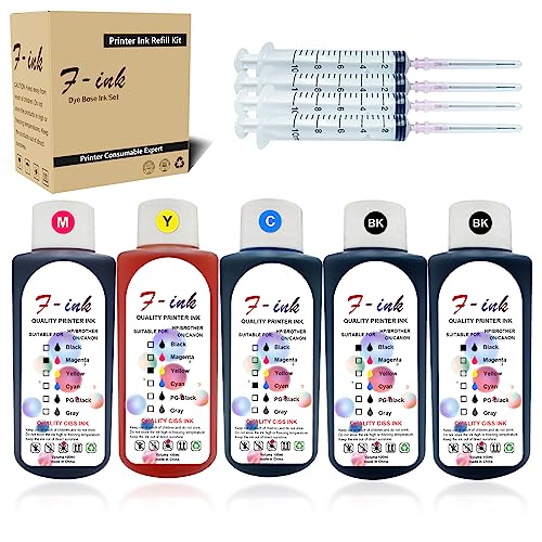 F-INK 5 flaskor med 100 ml bläck och bläckpåfyllning som är kompatibla med HP 304 302 650 62 652 300 300 301 304XL 652XL 300XL 650XL 302XL 301XL med påfyllningsverktyg