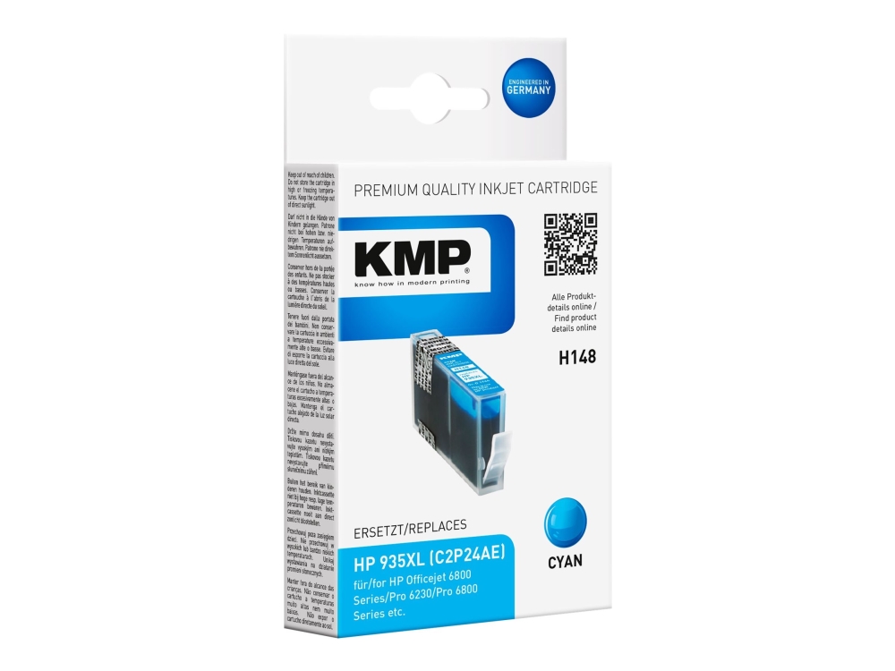 Kmp H148 - 15 Ml - Lång Livslängd - Cyan - Kompatibel - Bläckpatron (Alternativ För: Hp 935Xl) - För Hp Officejet 6812, 6815, 6820 Officejet Pro 6230, 6230 Eprinter, 6830, 6835