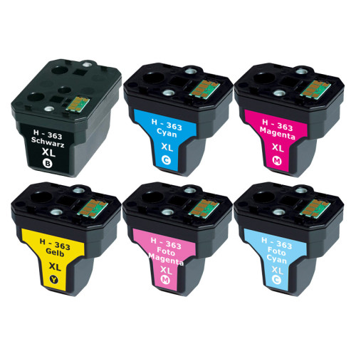 HP 363 XL Set (Svart, Cyan, Magenta, Gul, Light Cyan, Light Magenta). Kompatibla bläckpatroner (ej HP original).