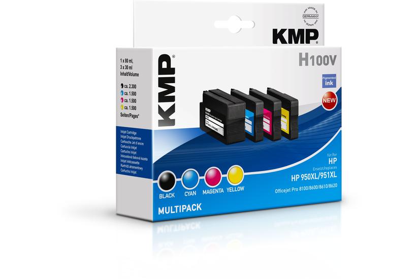 Kmp Multipack H100v - 4-Pack - Svart, Gul, Cyan, Magenta - Kompatibel - Bläckpatron (Alternativ För: Hp 950Xl, Hp 951Xl, Hp Cn045ae, Hp Cn046ae, Hp Cn047ae, Hp Cn048ae) - För Hp Officejet Pro 251, 276, 8100, 8600, 8600 N911, 8610, 8615, 8616, 8620,