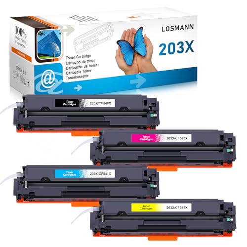 LOSMANN 203X toner kompatibel med HP 203X 203A CF540X CF541X CF542X CF543X för HP Color Laserjet Pro MFP M281fdw M281fdn M281cdw M280nw M254dw M254dn (Svart cyan gul magenta, 4-pack)