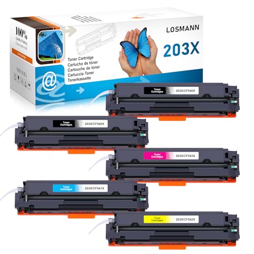 LOSMANN 203X toner kompatibel med HP 203X 203A CF540X CF541X CF542X CF543X för HP Color Laserjet Pro MFP M281fdw M281fdn M281cdw M280nw M254dw M254dn (Svart cyan gul magenta, 5-pack)