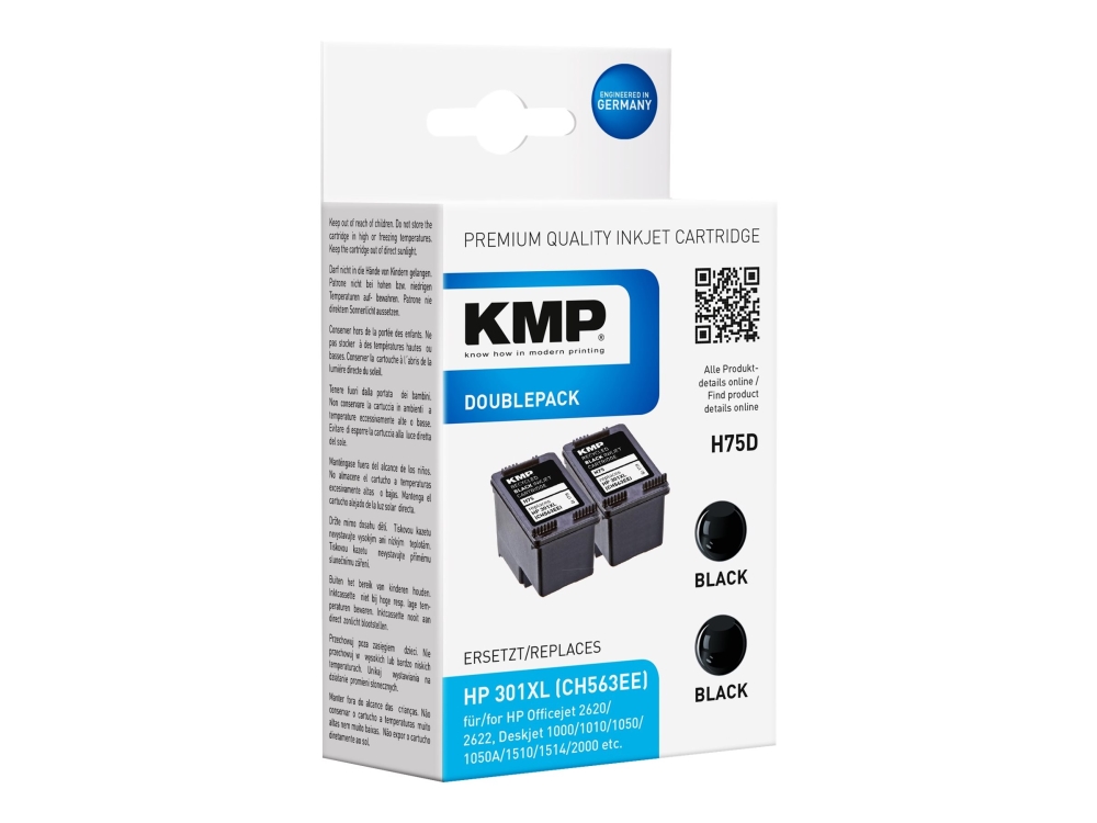 Kmp Doublepack H75d - 2-Pack - 8 Ml - Xl - Svart - Kompatibel - Bläckpatron (Alternativ För: Hp 301Xl, Hp Ch563ee) - För Hp Deskjet 1000, 1010, 1050 Aio, 1050A Aio, 1510 Aio, 2000, 2050 Aio, 2050A Aio, 2510 Aio, 2540 Aio, 3000, 3050 Aio, 3050A Eaio,
