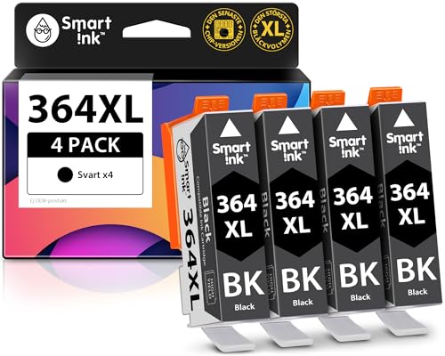 Smart Ink kompatibla bläckpatroner som ersättning för HP 364 XL 364XL (4 svart paket) patron hög kapacitet för HP Photosmart 5520 5510 5524 6520 5515 OfficeJet 4620 4622 DeskJet 3520