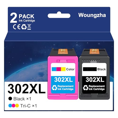 Woungzha 302XL renoverade bläckpatroner för HP 302 XL, svart och trefärgad, hög kapacitet, kompatibel med HP Envy 4520 4527, DeskJet 2130 3630 3636 3637 (1 svart, 1tricolor)