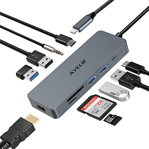 10-i-1 USB C-adapter, AYCLIF USB C-hubb för MacBook Pro/Air iPad Pro, HDMI 4K dockningsstation för Surface Pro 8, Dell, HP (PD 100 W, USB 3.0 TF)