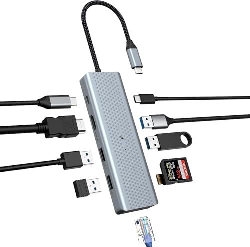 OOTDAY USB C-hub, 10-i-1 USB-förlängning för MacBook Pro/Air, HP, Lenovo, Gigabit Ethernet, SD/TF-läsare, 4K HDMI, USB C Ethernet-adapter