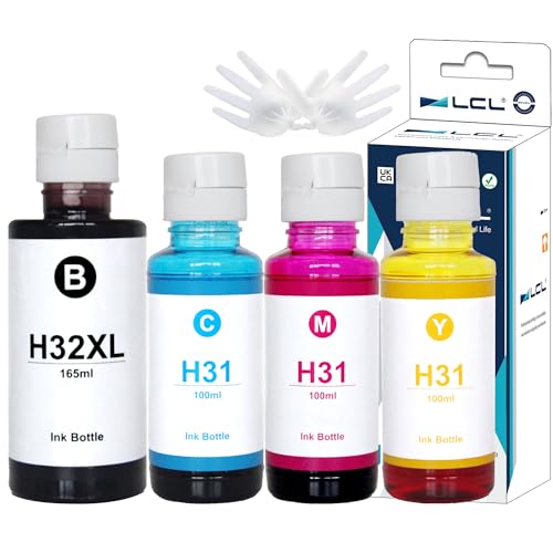 LCL Kompatibel bläckflaska 32XL 31 1VV24AE 1VU26AE 1VU27AE 1VU28AE (1Svart 1Cyan 1Magenta 1Gul) ersättning för HP Smart Tank 455 457 502 514 517 532 551 555 559 570 571 617 651 655