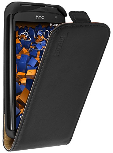 mumbi äkta läder flip fodral kompatibel med HTC Desire 500 skal läder väska fodral plånbok, svart