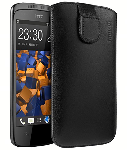 mumbi Äkta läderfodral till HTC Desire 500 med dragflik för borttagning