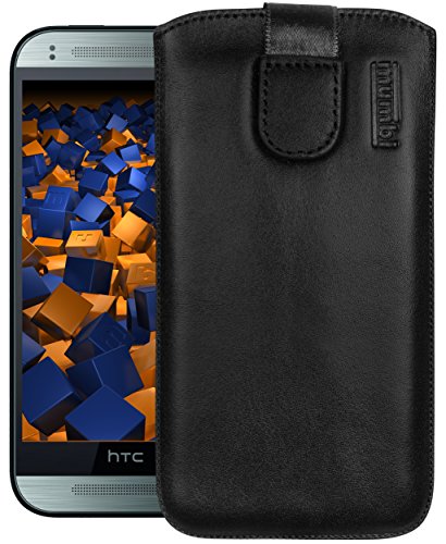 mumbi äkta läderfodral kompatibel med HTC One M8/M8s skal läder väska Case Wallet, svart