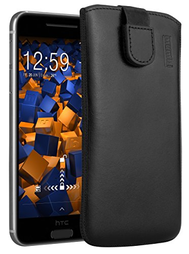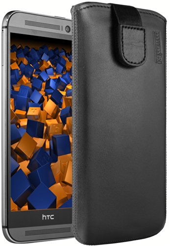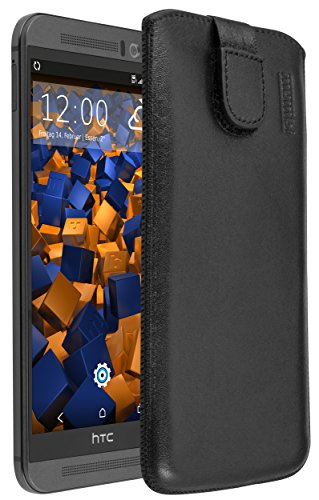 mumbi äkta läderfodral kompatibel med HTC One M9 Plus skal läder väska Case Wallet, svart