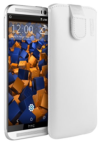 mumbi äkta läderfodral kompatibel med HTC One M8/M8s skal läder väska Case Wallet, vit