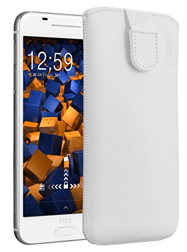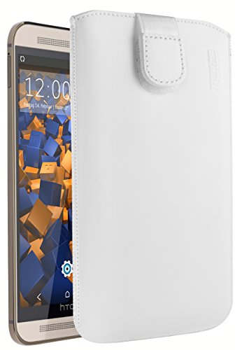 mumbi äkta läderfodral kompatibel med HTC One M9 Plus skal läder väska Case Wallet, vit