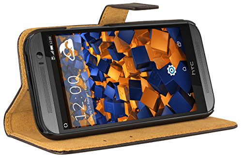 mumbi äkta läderfodral kompatibel med HTC One mini 2 skal läder väska Case Wallet, svart