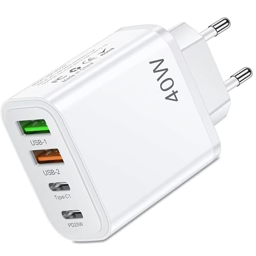 40W USB C Laddare, USB C Snabbladdare, 4 Portar PD+QC3.0 Strömadapter, Typ C-Charger För Samsung S25 S24 S23, Xiaomi 12/13/14, Huawei P40/P30/P20/P20 Pro/P10/P9 Google Pixel 6/6 Och Andra Enheter