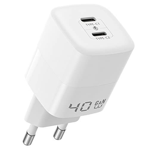 BZONE 40W USB-C-laddare, GaN III Tech 2-Port 20W USB C Plug, PD 3.0 PPS Power Bank Snabbladdare kompatibel med iPhone 14/13/12/11, Samsung Galaxy, Google Pixel, Huawei (kabel ingår inte)