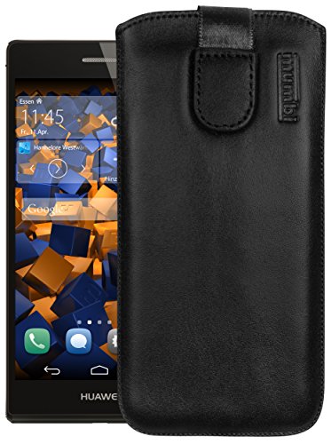 mumbi äkta läderfodral kompatibel med Huawei Ascend P7 skal läder väska Case Wallet, svart