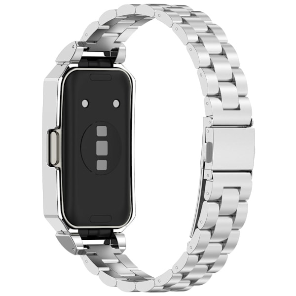 Metal Frame Huawei Band 10 / 10 NFC / 9 / 9 NFC / 8 / 8 NFC Watch Case Integrated Three Bead Stainless Steel Strap - Silver