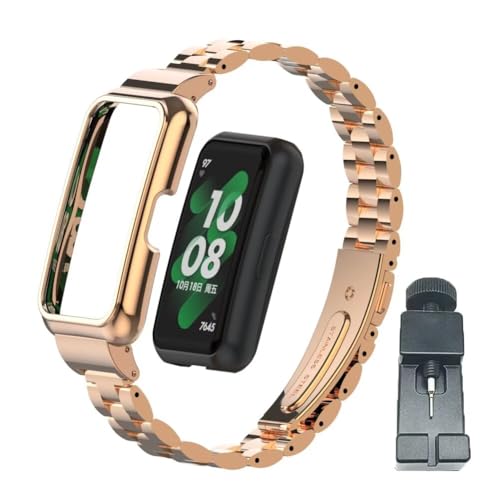 T-BLUER Kompatibel med Huawei Band 10/9/8/7 band, rostfritt stål metall ersättningsrem armband med metallram för Huawei Band 7/8/9/10 kvinna man, Rostfritt stål, Ingen ädelsten