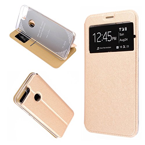 MISEMIYA ® - Huawei Y7 Prime 2018 / Huawei Y7 Pro 2018 / Huawei Honor 7C / Huawei Nova 2 Lite/Huawei Y7 2018 - Överdrag + Skydd Helskärm (Svart kant), Cover Sport Magnet Stativ,Guld