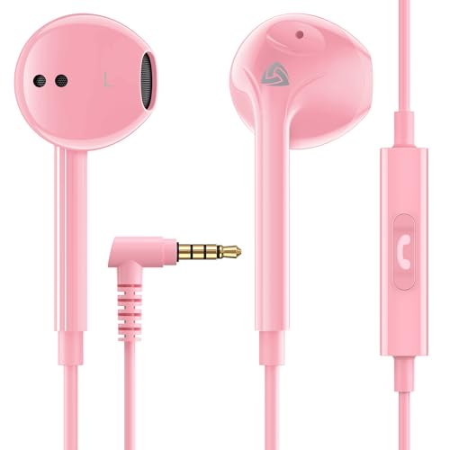 LUDOS Zenith Hörlurar, 2 års garanti, trådbundna hörlurar i örat, headset med mikrofon, kompatibla med Samsung surfplattor och bärbara datorer, Huawei, iPhone, MP3-spelare - rosa