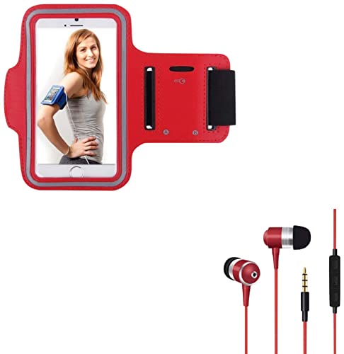 Sportset för Huawei Y7 2019 smartphone (sportarmband + hörlurar av metall med fjärrkontroll och mikrofon) T6 (röd)