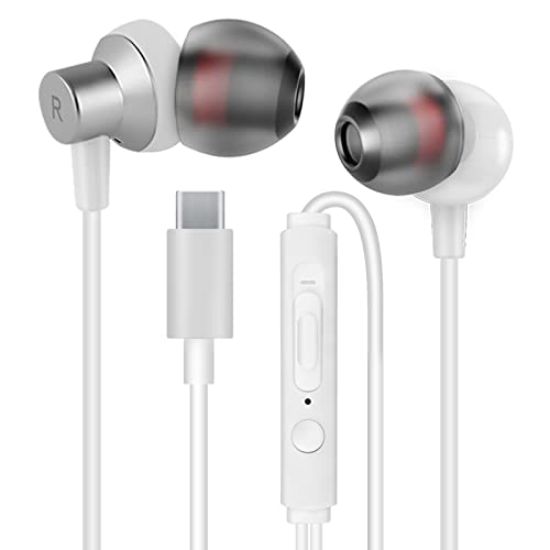 MAS CARNEY TH8 USB-C-Hörlurar med Kabel, In-Ear Earpods, Type-C Headphones med Mikrofon för iPad Pro, Samsung Galaxy S25 S24 S23 A55 A53, Google Pixel, Huawei, Mi, Oppo, Vit