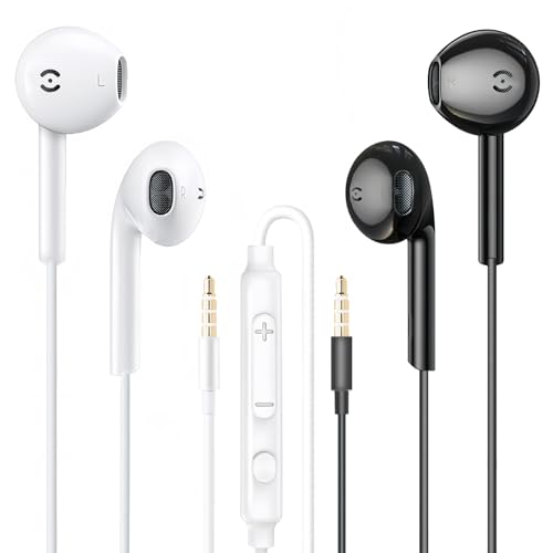 Xinlie 2-pack Trådbundna öronproppar med sladd Jack 3,5 mm hörlurar, trådbundna hörlurar och mikrofon 3,5 mm stereoheadset för iPhone, Samsung, Xiaomi, Oppo, Sony, Huawei