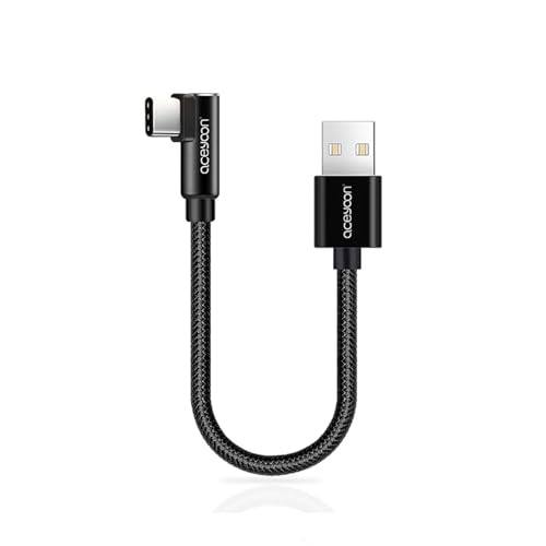 aceyoon USB typ-C 90 grader 20 cm kabel, USB C snabbladdning, kort nylon C-kabel för Galaxy A70 A60 S22 S21 för Huawei P20 Lite P40 Mate 20 P9 för Redmi Note 9 Mi 8 A2