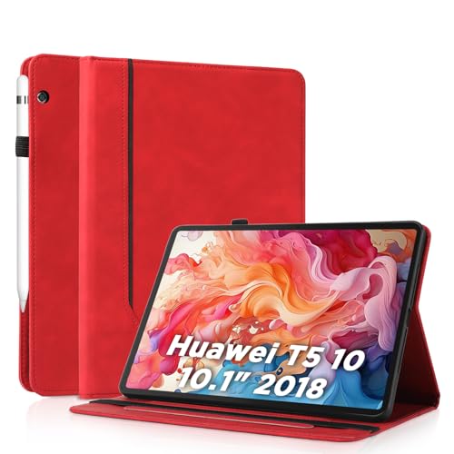 AsWant fodral för Huawei Mediapad T5 10,1 tum, skyddsfodral ultratunt PU-läder med stativ skyddsfodral Huawei Mediapad T5 fodral, röd