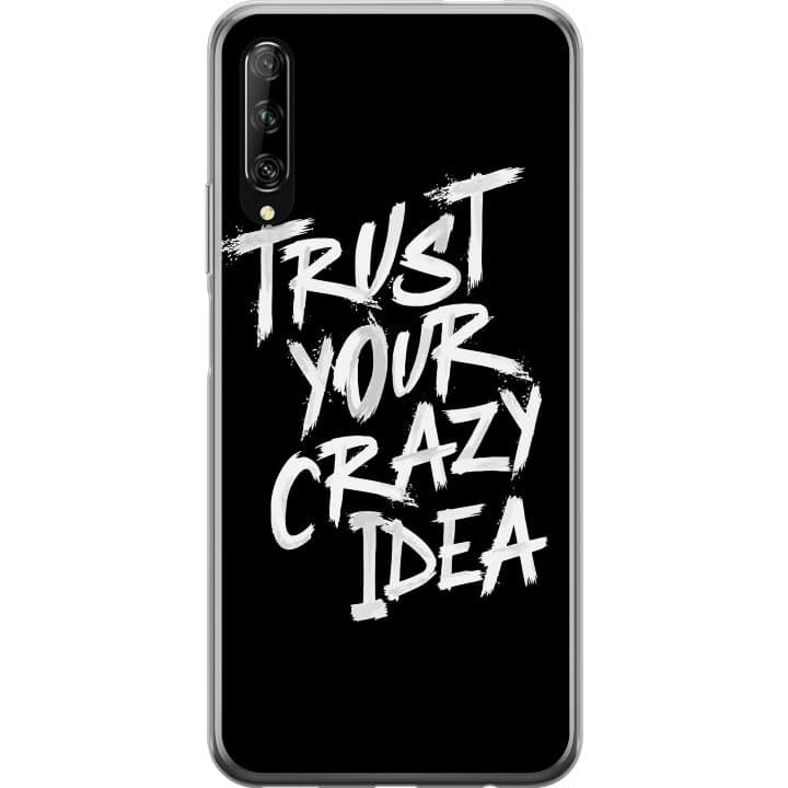 Huawei P smart Pro 2019 Genomskinligt Skal Svartvit textdesign med budskapet Trust Your Crazy Idea i kraftfull penselstil som inspirerar mod, kreativ