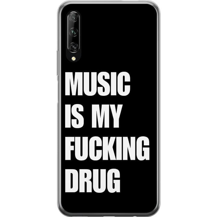 Huawei P smart Pro 2019 Genomskinligt Skal Tydlig svart bakgrund med stark vit text som uttrycker passion för musik i kraftfull rakt modern stil, ett