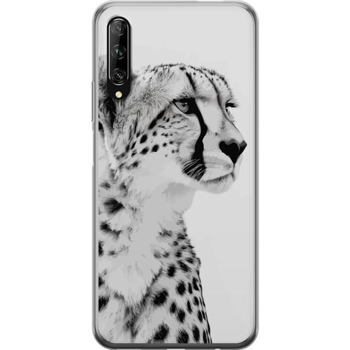Huawei P smart Pro 2019 Genomskinligt Skal Stilren svartvit närbild av gepard med lugn blick, eleganta markeringar och ädelt uttryck som skapar kraft