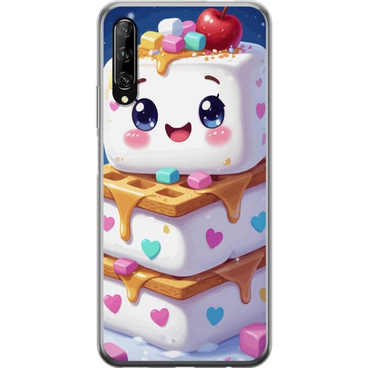 Huawei P smart Pro 2019 Genomskinligt Skal Söt marshmallowfigur med hjärtan våfflor sirap och färgglada bitar skapar lekfullt dessertmotiv med glad s