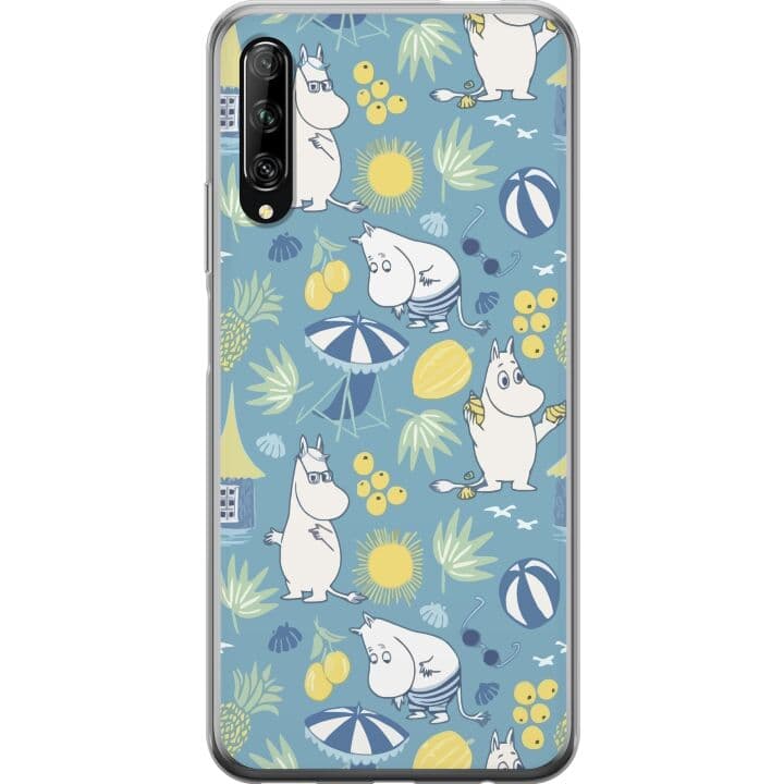Huawei P smart Pro 2019 Genomskinligt Skal Strandtema med frukter, parasoller, sommarhus och glada figurer i färgglatt mönster fyllt av lekfulla deta