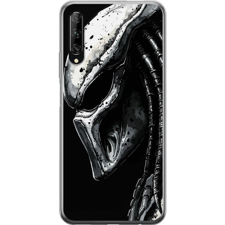 Huawei P smart Pro 2019 Genomskinligt Skal Dramatisk illustration av Predator-mask med metalliska texturer skuggor och detaljer som förstärker ikonis
