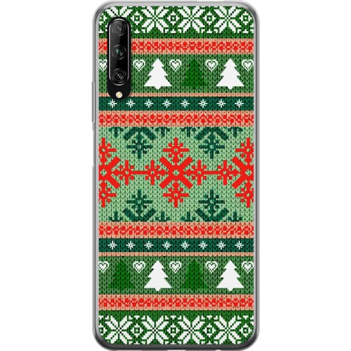 Huawei P smart Pro 2019 Genomskinligt Skal Julinspirerat stickmönster i rött, grönt och vitt med snöflingor, hjärtan och granar som skapar klassisk m