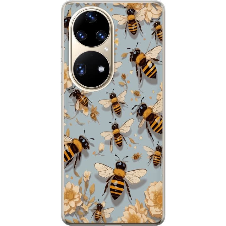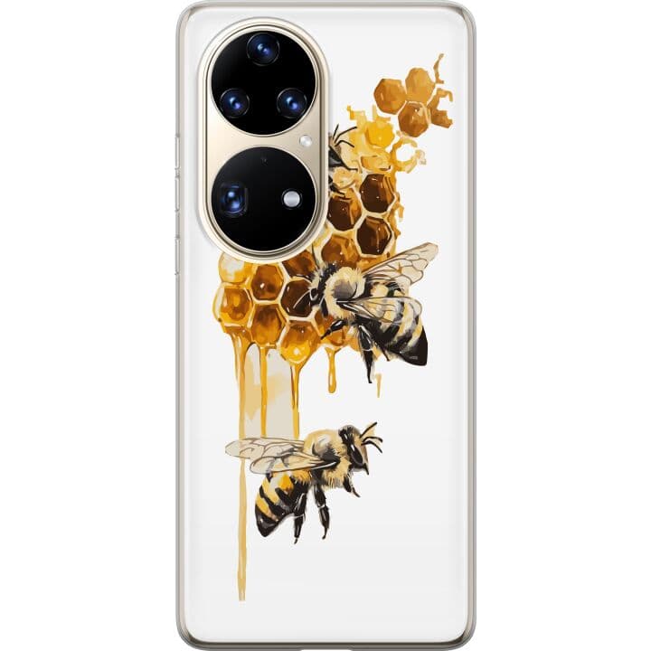 Huawei P50 Pro Genomskinligt Skal Bin och honungskakor i gyllene färger, naturinspirerad design med varm ton och sommarkänsla