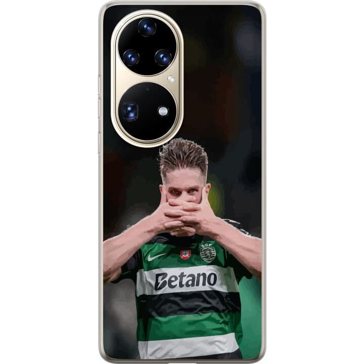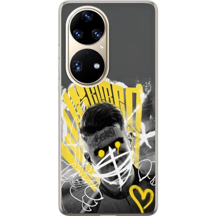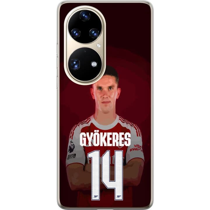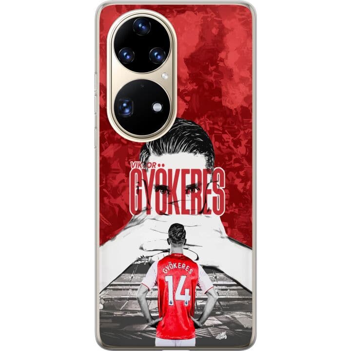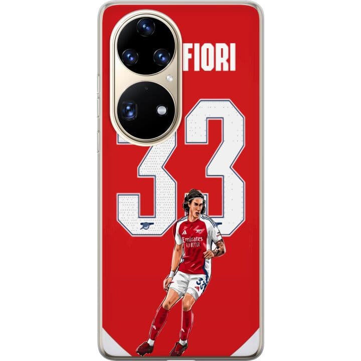 Huawei P50 Pro Genomskinligt Skal Calafiori 33 Arsenal fotbollsdesign röd bakgrund sportstil med kraft energi och klubbkänsla perfekt för fotbollsäls