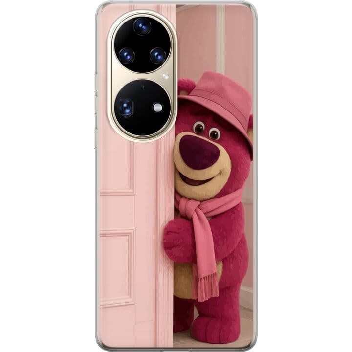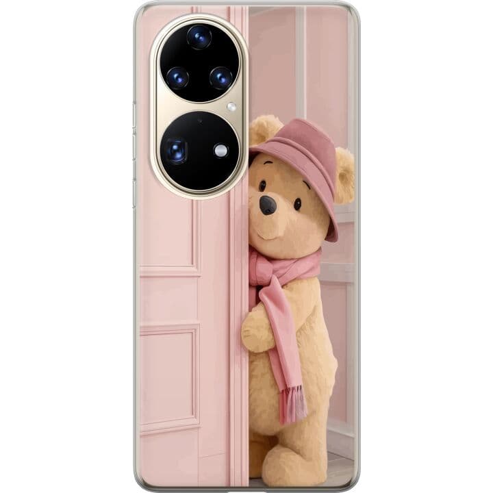 Huawei P50 Pro Genomskinligt Skal Rosa nalle med hatt och scarf, söt pastellfärgad design fylld av kärlek, humor och värme