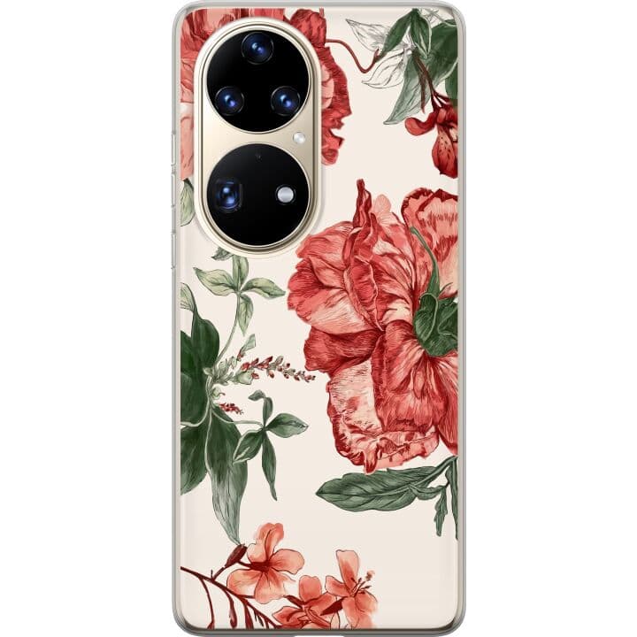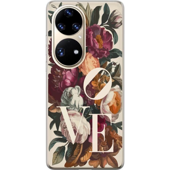 Huawei P50 Pro Genomskinligt Skal Kärleksfullt blommotiv med pioner i vintagestil romantiskt varmt design för dig som älskar klassisk skönhet